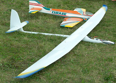 The Sunday was perfect flying weather. There was a great range of models from sleek glass soaring gliders to beautifully built and flown large scale models. There was also a great display of almost formation flying from a pair of fast deltas.