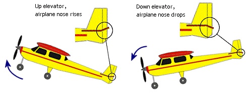 Aircraft can rotate in three axes. The pitch axis (yellow) is where the nose rises and falls. The roll axis blue) is where one wing goes up and the other goes down. The yaw axis (red) is where the tail moves to one side or the other.