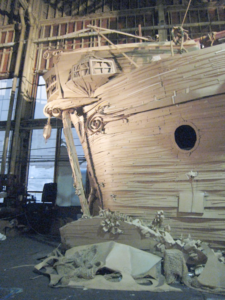A cardboard model of a ghost ship